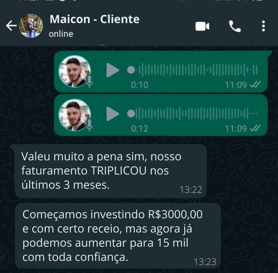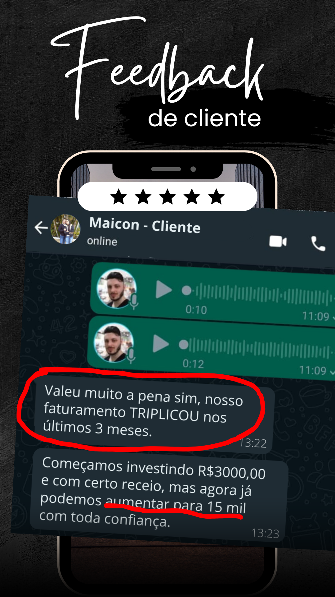 Eu acelero esse processo com um volume inicial de compradores reais. Isso reduz custos, aumenta conversão e cria uma base sólida para escalar.